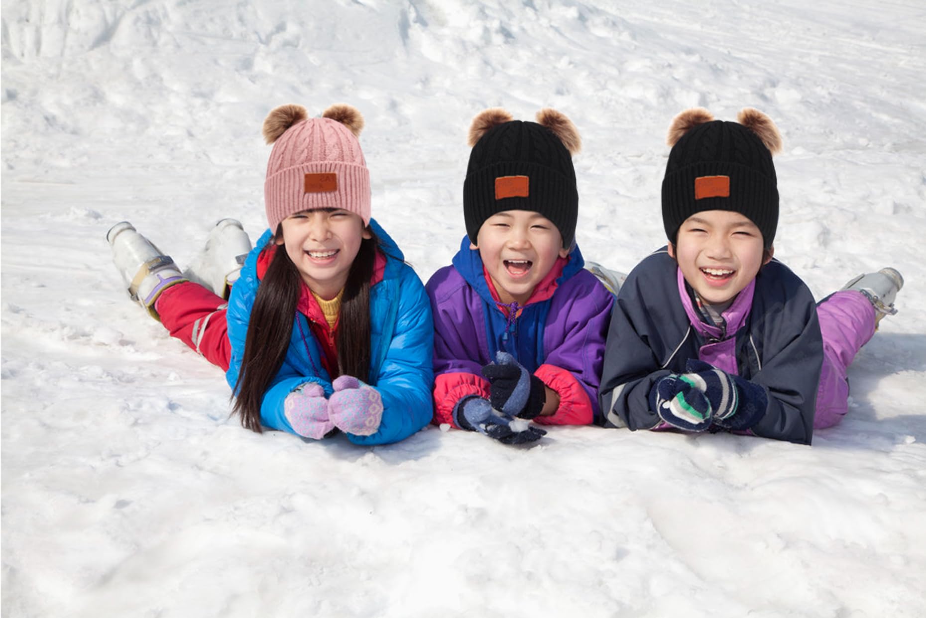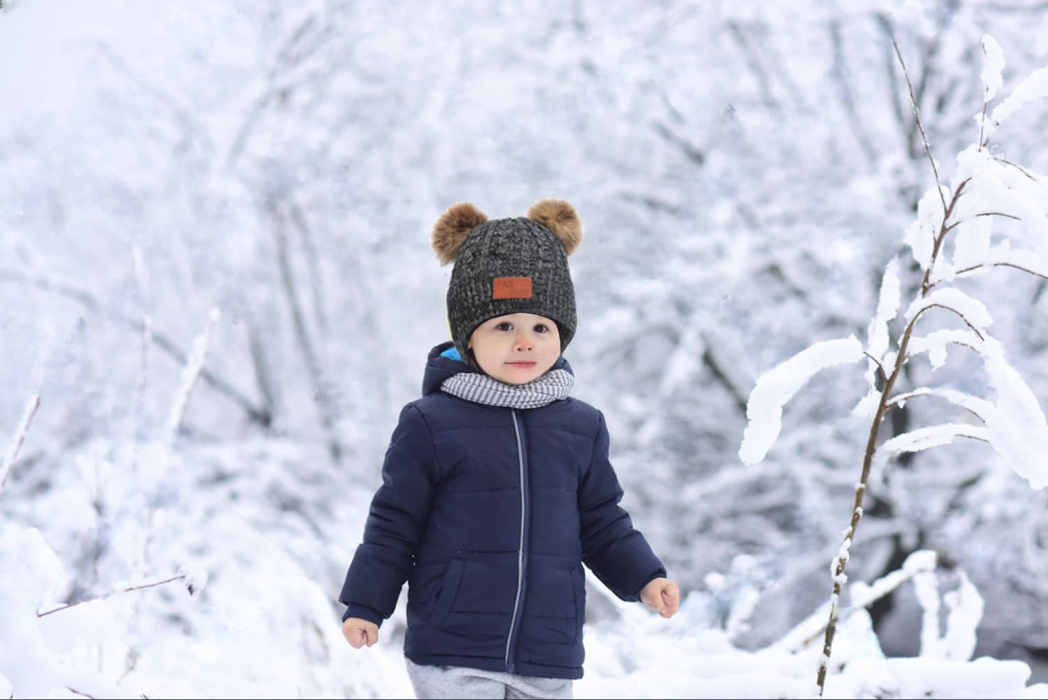 Il y a deux boules en peluche tendance et mignonnes sur le dessus du chapeau, il peut être démonté.