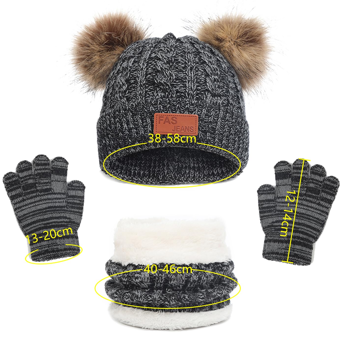 - Ensemble indispensable pour l'hiver des enfants : Cet ensemble comprend un bonnet en maille, une grosse écharpe ronde et un gilet en maille. Chaud et confortable, il s'accorde avec toutes les tenues. C'est l'accessoire idéal pour les enfants en hiver.