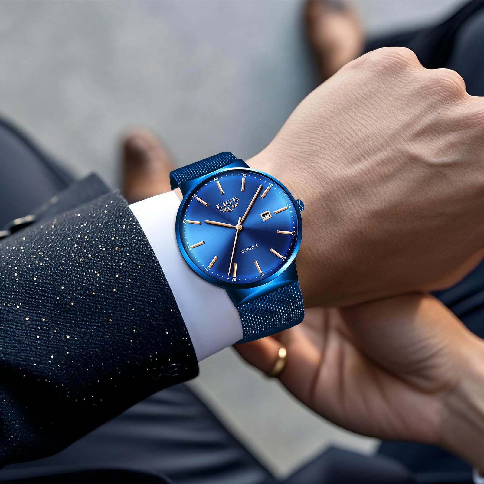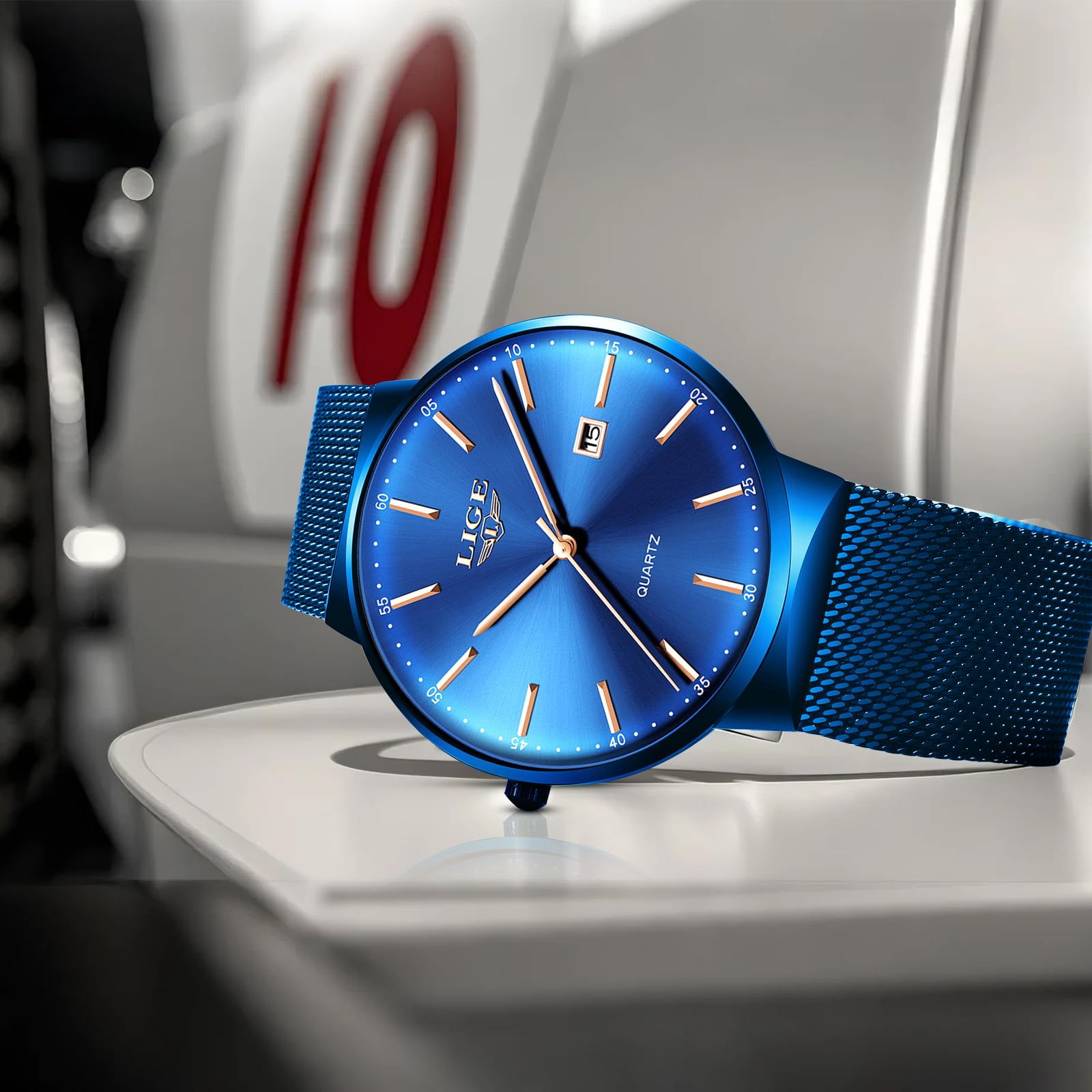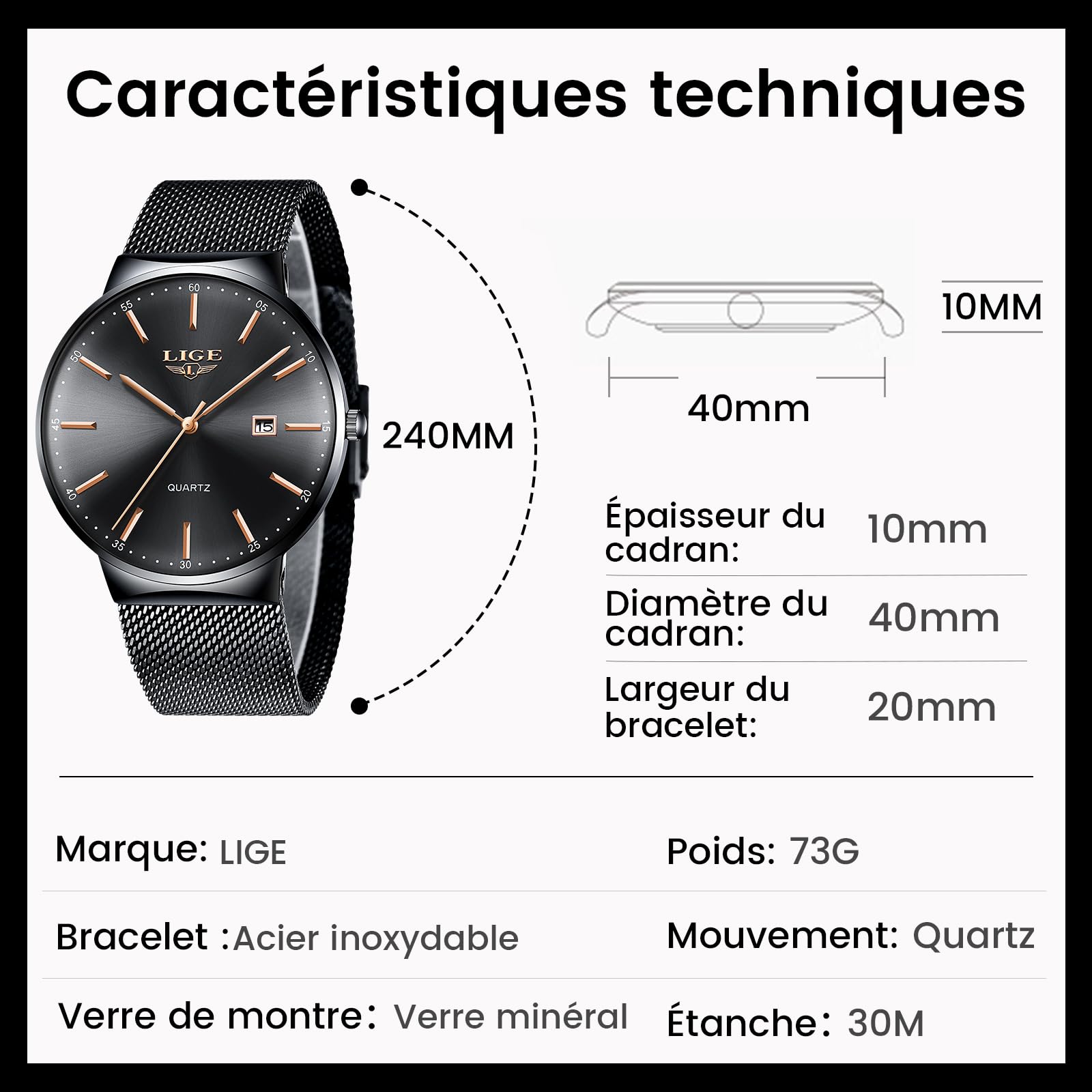 Montre Homme LIGE – Quartz Étanche 3ATM | Acier Inoxydable & Calendrier