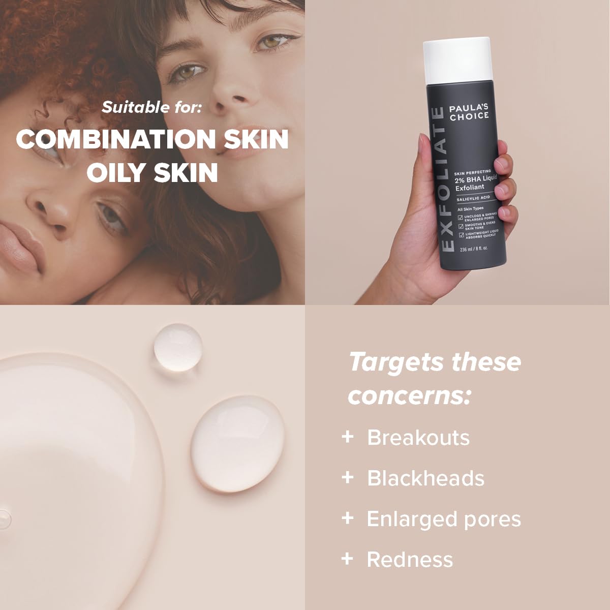combat les points noirs et les imperfections. Ce peeling doux et léger exfolie rapidement les cellules mortes. Le BHA (acide salicylique) régule l'excès de sébum et aide à réduire les points noirs, les boutons et les rougeurs.
